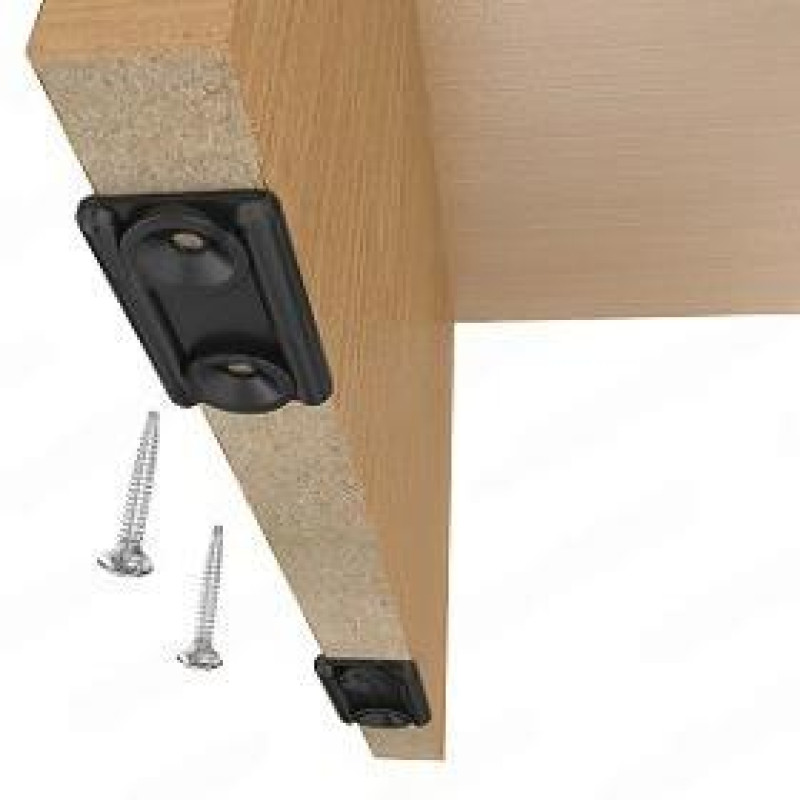Пластиковые подпятники под торец ДСП. Крепятся двумя саморезами или гвоздями. Благодаря боковой выемке несколько подпятников фиксируются на одной линии.